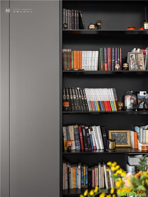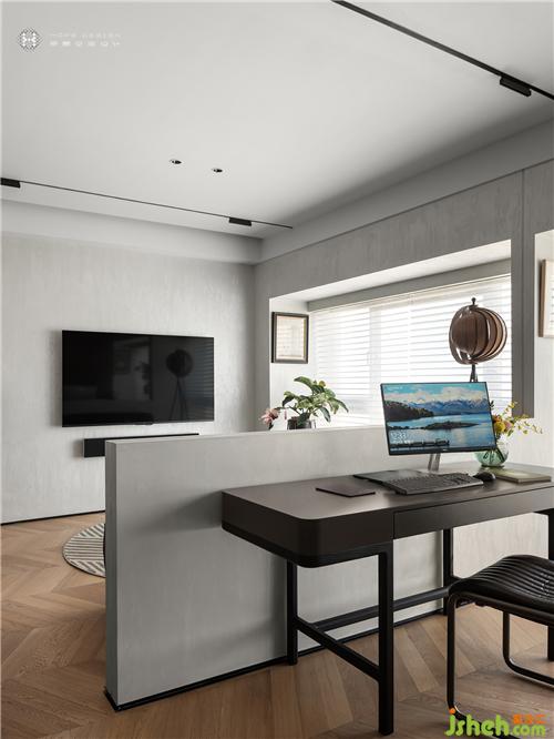 現(xiàn)代感書(shū)柜顏色與書(shū)桌遙相呼應(yīng),增強(qiáng)整體感。日月流轉(zhuǎn)的光影輕鋪在書(shū)籍與油畫(huà),深圳裝修設(shè)計(jì)記錄著抵達(dá)過(guò)的每一個(gè)清晨和夜晚。