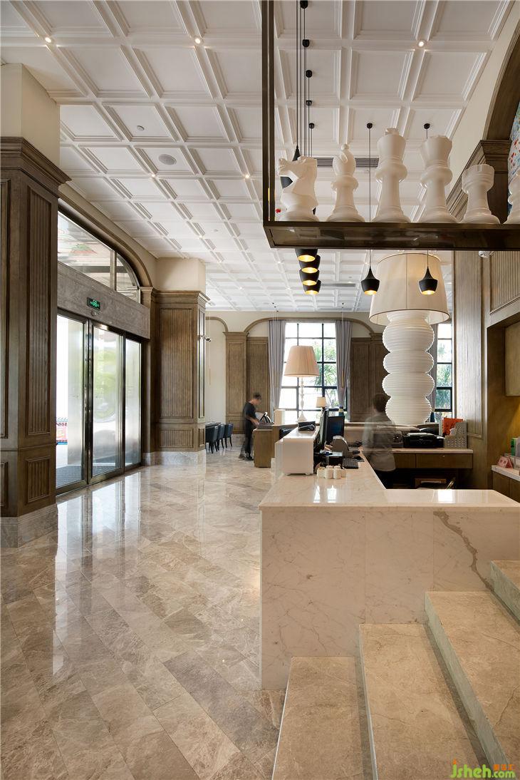 巴黎是著名的世界藝術(shù)之都,是芭蕾舞的誕生地,我們希望賦予西餐廳一種寧?kù)o和芭蕾舞者優(yōu)雅的氣質(zhì),沉穩(wěn)的咖啡色調(diào)中,融入時(shí)尚元素。一對(duì)舞動(dòng)著的芭蕾舞者,一個(gè)醒目的小提琴,一本翻閱著的琴譜,一組夸張的大型臺(tái)燈無不讓人眼前一亮而印象深刻。小天使的雕塑與國(guó)際象棋的吊飾,讓空間產(chǎn)生互動(dòng)與趣味性的同時(shí),彌漫著濃郁的古典色彩。三層連廊以白色的永恒為基調(diào),粉紫色的溫馨浪漫情懷。無數(shù)條白色鋼管編織而成的穹頂,牽動(dòng)著每一對(duì)新人激動(dòng)的心緒,讓彼此的心走得更近。
