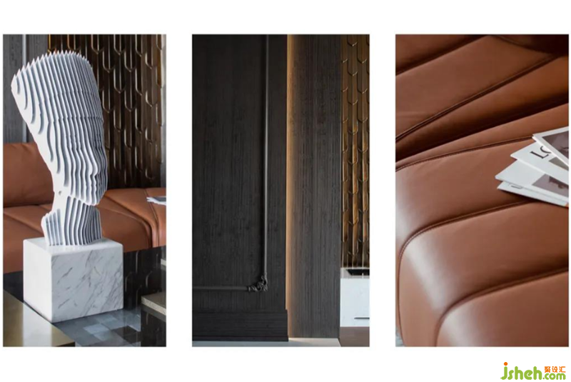 色彩上,用極簡(jiǎn)白、高級(jí)灰作為主色調(diào),奠定了空間沉穩(wěn)內(nèi)斂的底色。與皮質(zhì)、金屬金、大理石、木材等不同材質(zhì)的組合,以新現(xiàn)代主義的審美視角融入浪漫的法式。讓古典裝飾在現(xiàn)代空間中也能成為一種賞心悅目的細(xì)致格調(diào),不斷往外傳遞出一種高貴典雅的時(shí)尚氣息。
