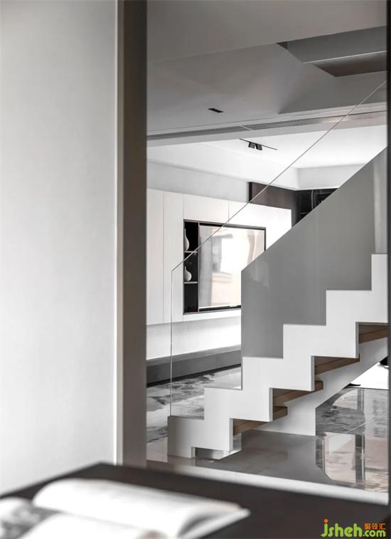 視線隨流暢的扶梯線條上溯,上躍豪宅設(shè)計(jì)以淺淺一束光,便可突破空間隔閡,享受更為私密的個(gè)人空間。