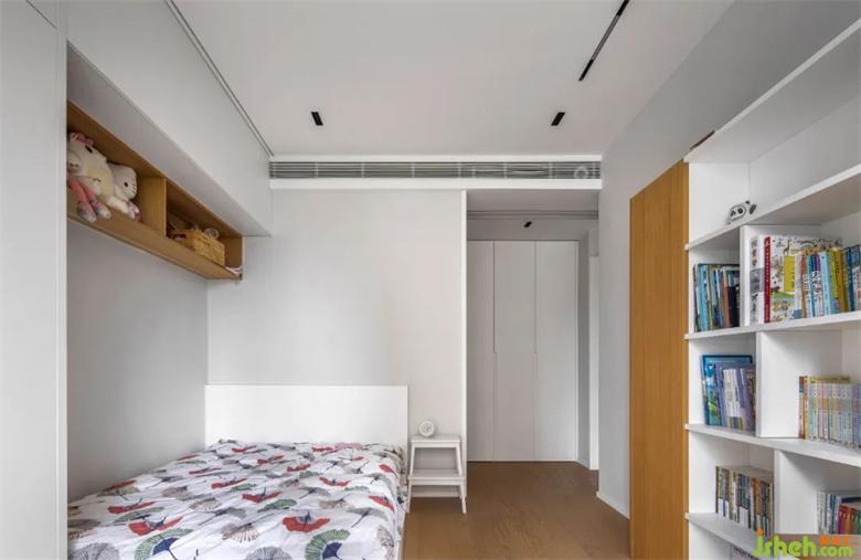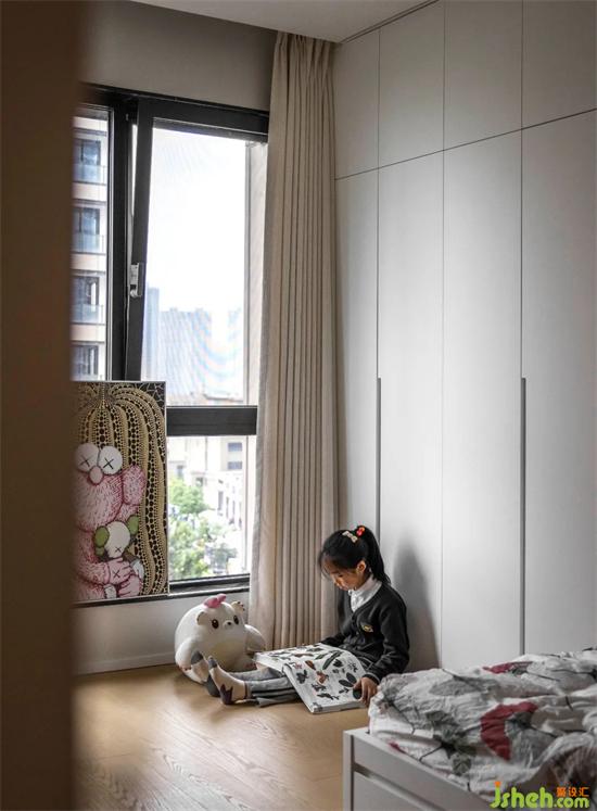 孩子房沿用整體風(fēng)格,溫潤的木飾面搭配柔軟的小床,書架與裝修設(shè)計(jì)書桌兼具滿足日常的使用。同時(shí)使用通頂儲物柜,收納孩子的雜物,創(chuàng)造出專屬于孩子們富余的一方天地。