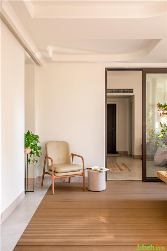 花園角落里安放了一椅一幾,便于在每一個陽光滿溢的午后愜意閱讀,即使?jié)u漸被睡意包裹也可緩緩松開手中的書籍,進入沉沉的夢鄉(xiāng)。而此刻傾斜的陽光透過窗戶來到身上、椅子上、地板上和墻上。隨著時間的流動陽光也開始流動緩緩溫暖著這個家庭的相伴時光。