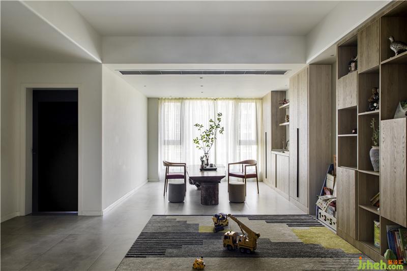 另一個公共空間依舊通透方正,靠近陽光的區(qū)域是品茶待客的不錯選擇或挑個時間開一場短暫的家庭會議,規(guī)矩又不失和諧是家人之間張弛有度的相處之道。