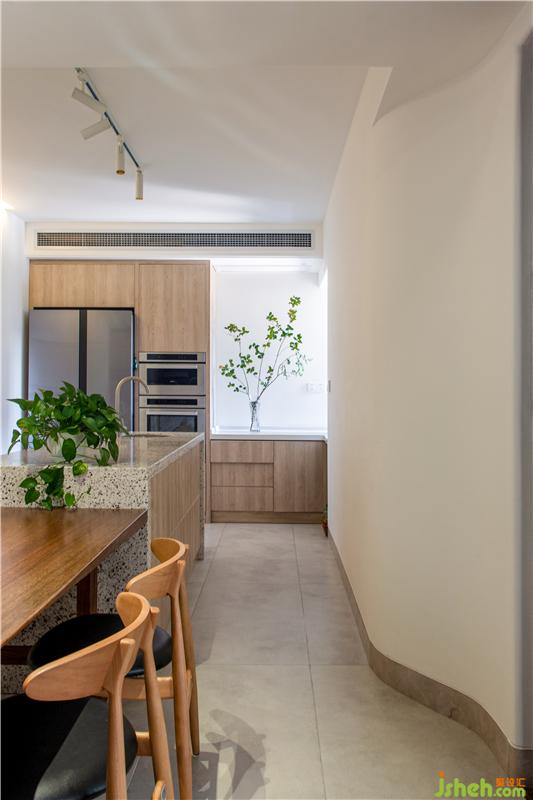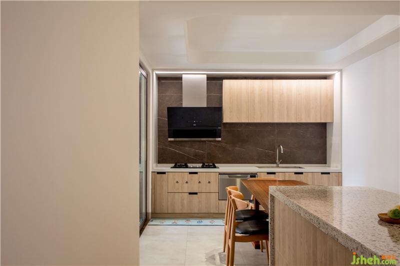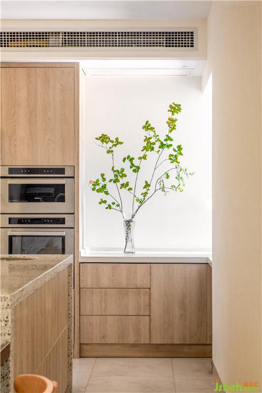 我們希望餐廚空間簡(jiǎn)潔利落,讓家庭廚師日常操作順暢無(wú)阻點(diǎn),即使是臺(tái)面石材與磚之間也平和流暢,干凈整潔的廚房是主人善意純粹的人格物化。