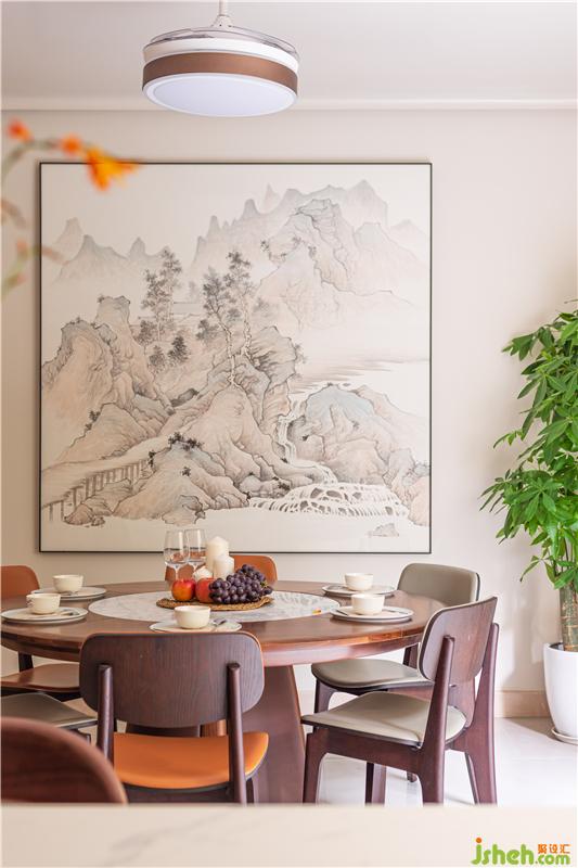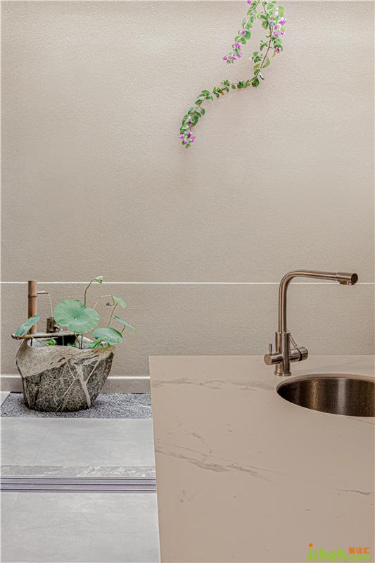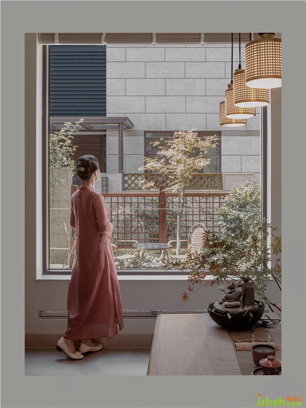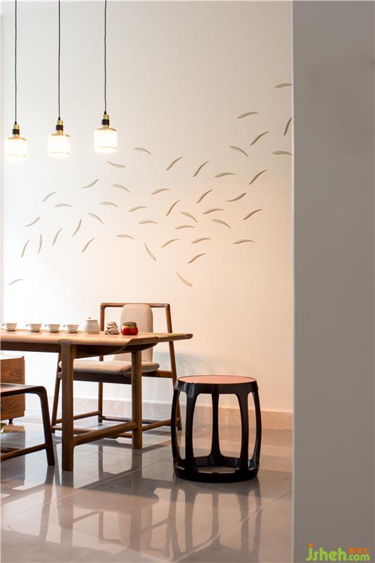 把竹葉新中式裝置點綴天井墻上由下往上,是積極生長的力量舞動旋轉,方寸間,感知主人對陽光的向往同時也追求一種積極的生活態(tài)度!