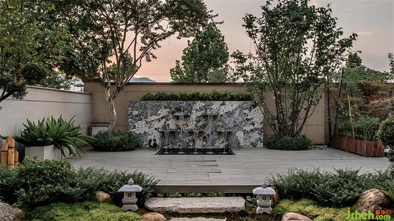 自入戶(hù)門(mén)廳步入住宅,花墻端景令人眼前一亮;重慶別墅裝飾對(duì)稱(chēng)構(gòu)圖彰顯平穩(wěn)之感,與池中的潺潺流水、跳動(dòng)魚(yú)群對(duì)比。