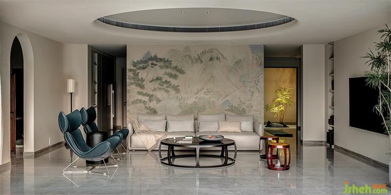 重慶別墅裝飾直線繪出兩點(diǎn)間的最短距離,弧線卻是自然界饋贈(zèng)的神秘禮物。客廳、茶室中的陽(yáng)角和柱子,皆采用了弧形設(shè)計(jì),是帶給空間靈動(dòng)的調(diào)劑,亦是敬獻(xiàn)給大自然的回禮。