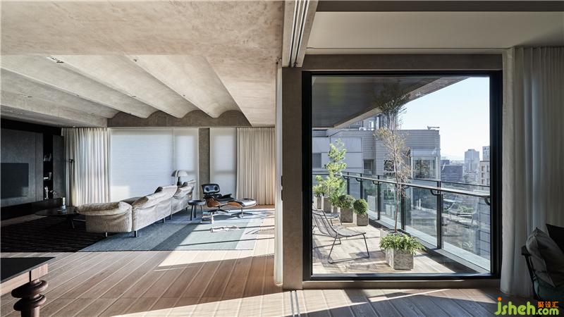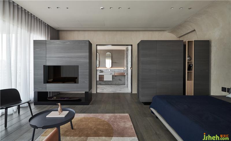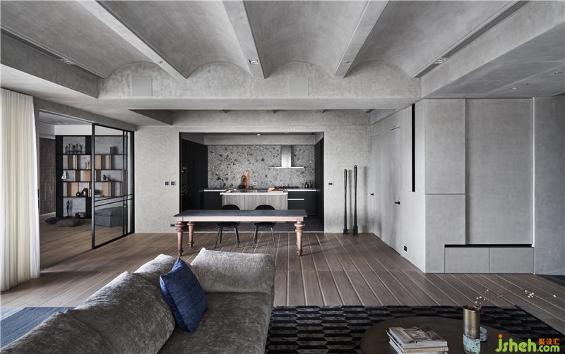 于公、私領(lǐng)域大量置入自然礦物的灰色主調(diào)于生活中,達(dá)到一種舒緩的心靈放松。同色系不同材質(zhì)的質(zhì)感運(yùn)用,呈現(xiàn)靜的不同層次,交迭出靜謐感,隱喻和諧、回歸自然。