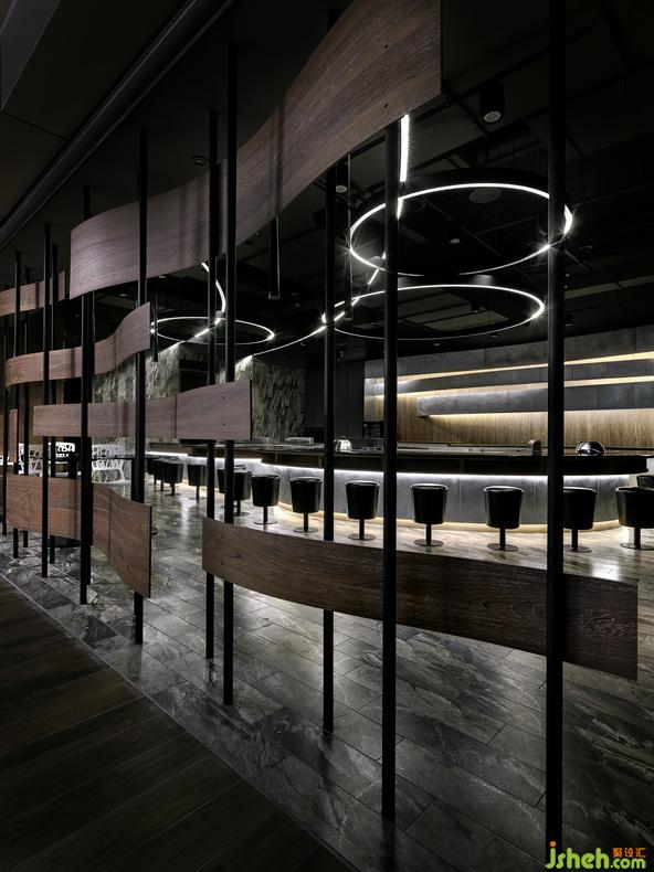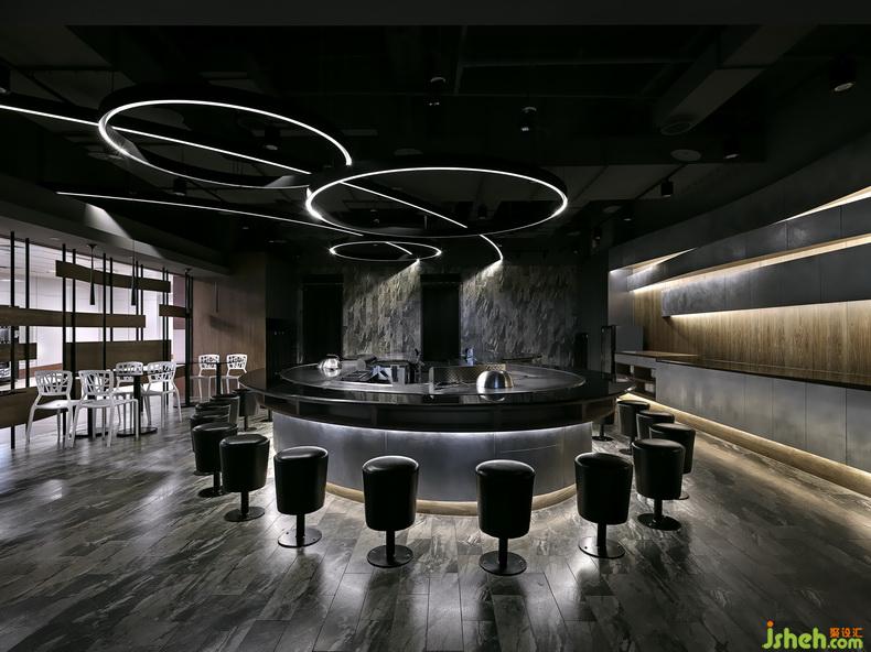 2. 天花懸浮線性造型以鐵件特製大軸距環(huán)型燈飾輔助照明。