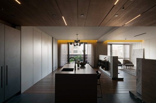 與立面柱體產(chǎn)生涵構(gòu)性的對話,積極延伸出思想對于自然的探索、展現(xiàn)對于時間的互動,設計上企圖引用動態(tài)的介質(zhì),消弭界線,串連動態(tài)對應,開闊而充滿想像…