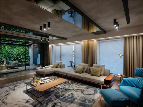 The vertical and horizontal axes were interfaced to form physical and virtual spaces which deliver a sense of splendor and make the living space comfortable and harmonious with the natural environment.