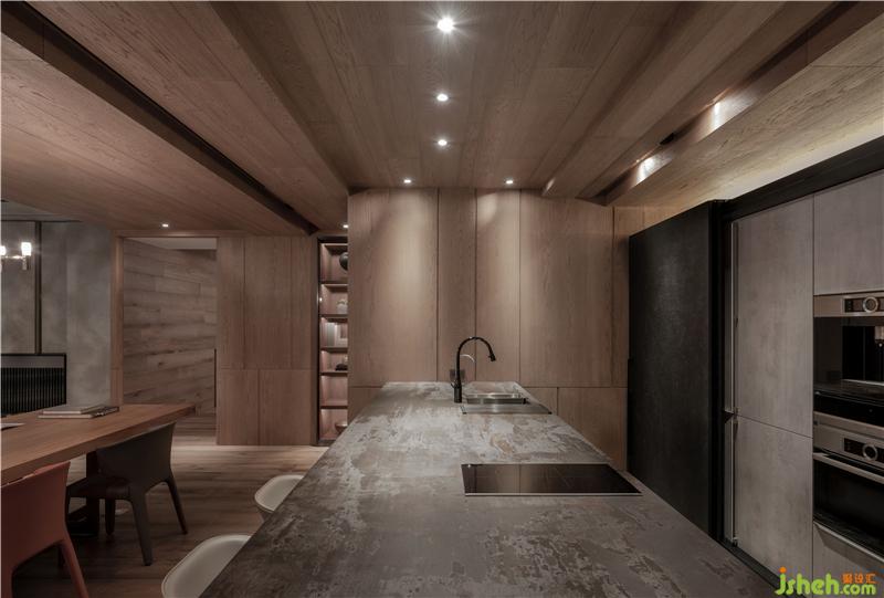 全宅雖擁有三面采光的大戶優(yōu)勢,但進(jìn)門玄關(guān)處卻明顯偏暗,因此我們打造一整面植生墻,營造一回家便如同走入一座森林、大反差的情境驚艷引人入勝,實作上并搭配灰鏡天花板,加上色溫接近天然光的照明計畫,一舉突破暗區(qū)限制,成功借凸顯大面植生墻的蓬勃綠意,熱情迎賓也醞釀場域包容力,地坪則選用質(zhì)樸木紋石,精工裁成不同大小、紋理行交丁錯拼,于極度和諧舒服的暖調(diào)中,釋放宛如置身大自然的療愈氛圍。裝修公司