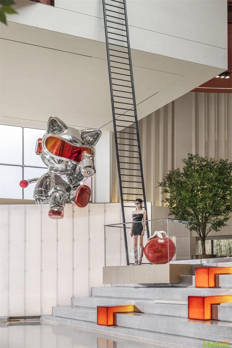 關于品牌的未來我們有著無限的想象。品牌科技金貓化身品牌的探索代言人,裝修設計居于空間高處以探索者的姿態(tài)出現(xiàn),靈動豐富了空間的整體氣質。富有光澤感的外形賦予它十足的未來氣息,豐富的好奇心探求品牌未知的潛力。