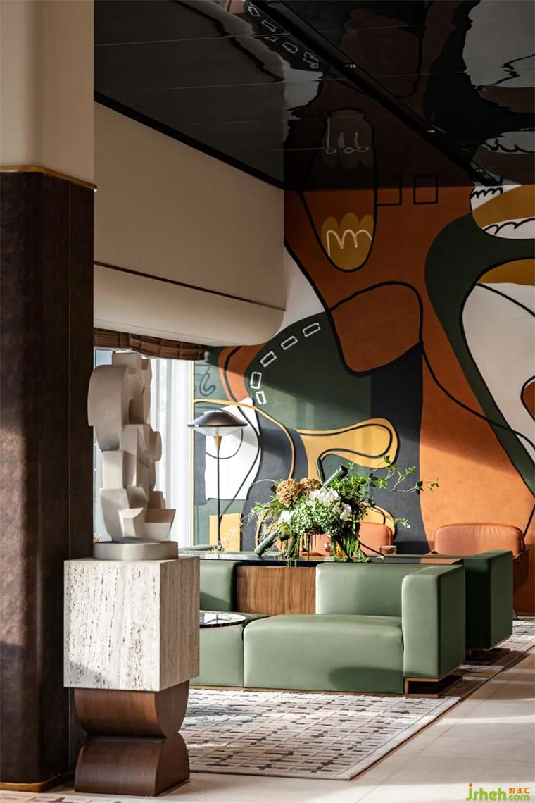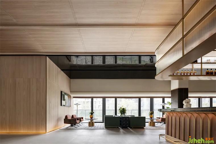 VIP室,陽(yáng)光透過(guò)大面積玻璃窗,遠(yuǎn)處的山巒歷歷在目,裝修設(shè)計(jì)凝思中事物的物象溶為一體,可謂吸納了山巒的靈光。