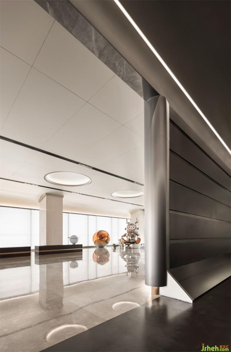 時間中的人可以回望或是展望。每時每刻,時間只能一往無前,在藝術(shù)的表達(dá)中,售樓處設(shè)計未來感的空間氛圍中,試圖尋求一瞬間定格的永恒。中性的色彩,堅硬的材質(zhì),直線條的光源,恰如其分表達(dá)未來生活的科技與理性,細(xì)心尋覓,用心感受,高度的簡潔中仍帶著不容置疑的溫暖。