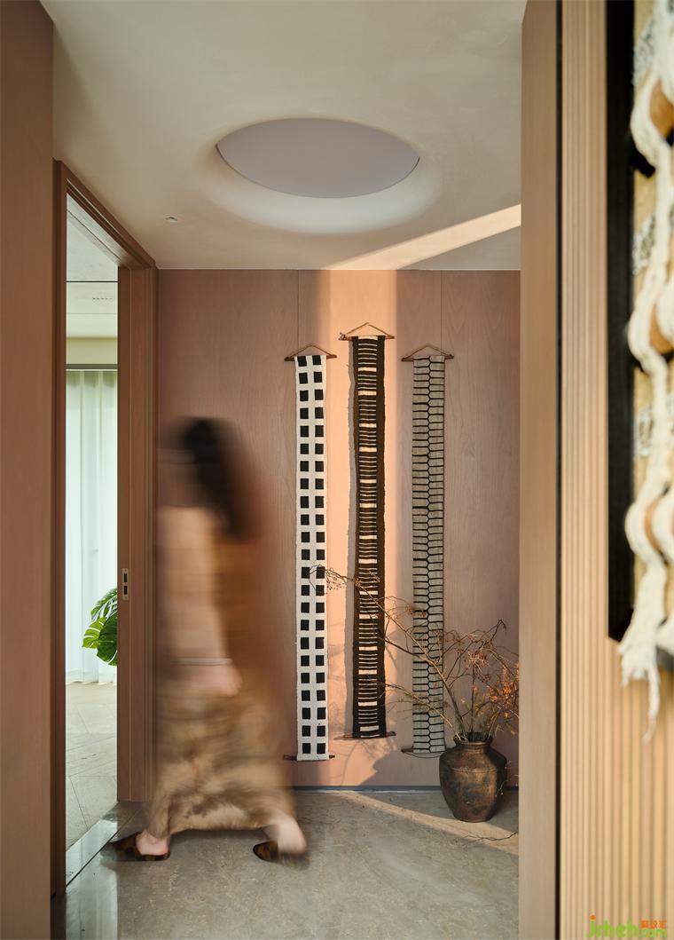 陽臺則打造成一片輕松愜意的小憩之地。鳥籠懸掛在空中,樣板房設計增添了幾分靈動與自然之美。尤為引人注目的是那幅編織而成的掛畫,其獨特的質感與紋理細膩地訴說著生活的溫度與匠人的巧思,使得這片小天地充滿了濃厚的藝術氣息和生活情調。