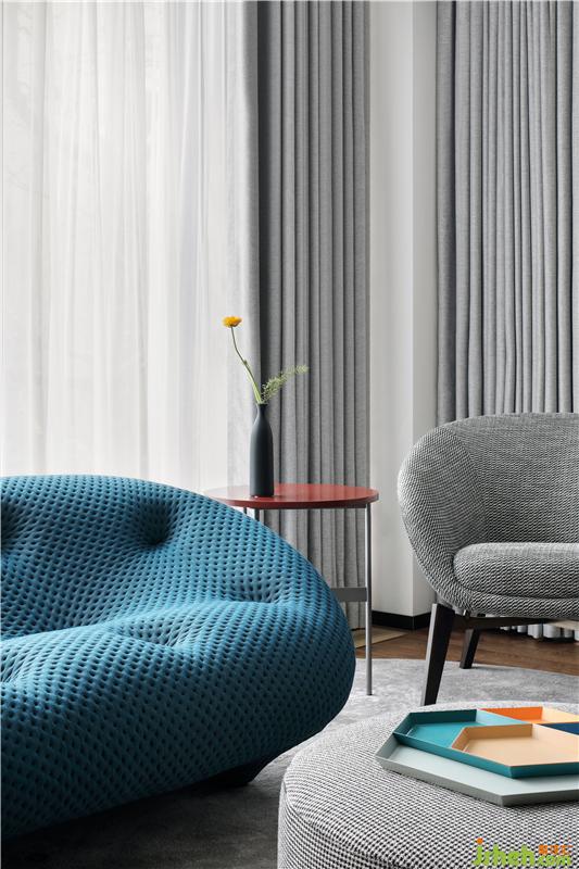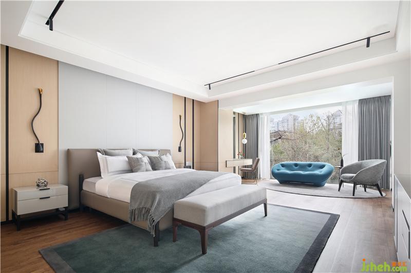 窗邊設(shè)有女主人的梳妝休閑區(qū),坐擁開闊視野,休憩之余,慵懶地窩在沙發(fā)里,或釋卷而出神,或看夕陽西斜,或聽細(xì)雨入眠。