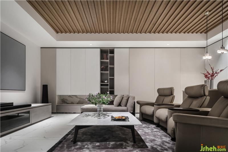 影視廳和鋼琴廳作為以視聽為主的功能空間,被設(shè)置在了負(fù)一樓,兼具隔音性與私密性,靜享生活的閑暇時光,安然自得。