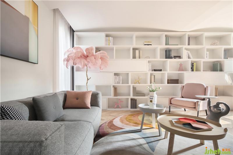 二樓家庭廳的弧度家具陳設(shè)既是對(duì)空間“曲”形態(tài)主題的呼應(yīng),又讓人感覺(jué)到舒適溫馨。明快的暖色調(diào),讓空間散發(fā)出一種放松感,充滿了愉悅的趣味。