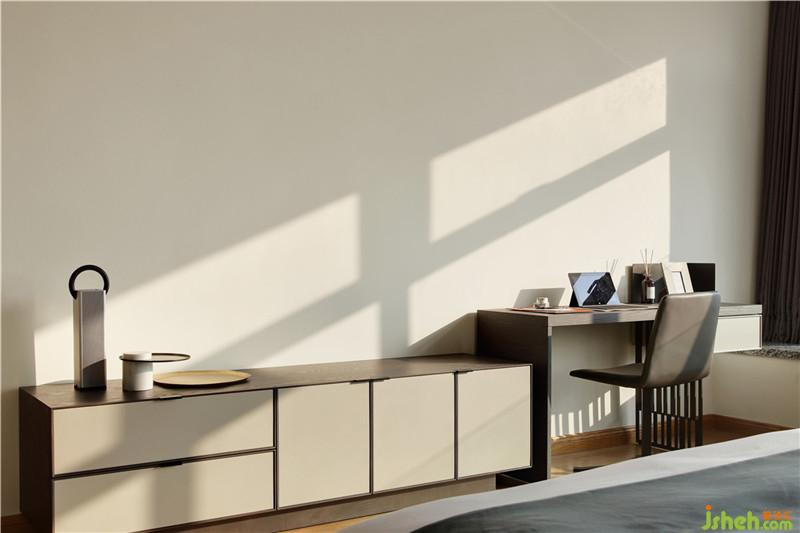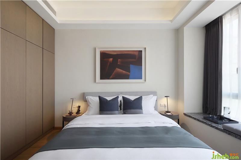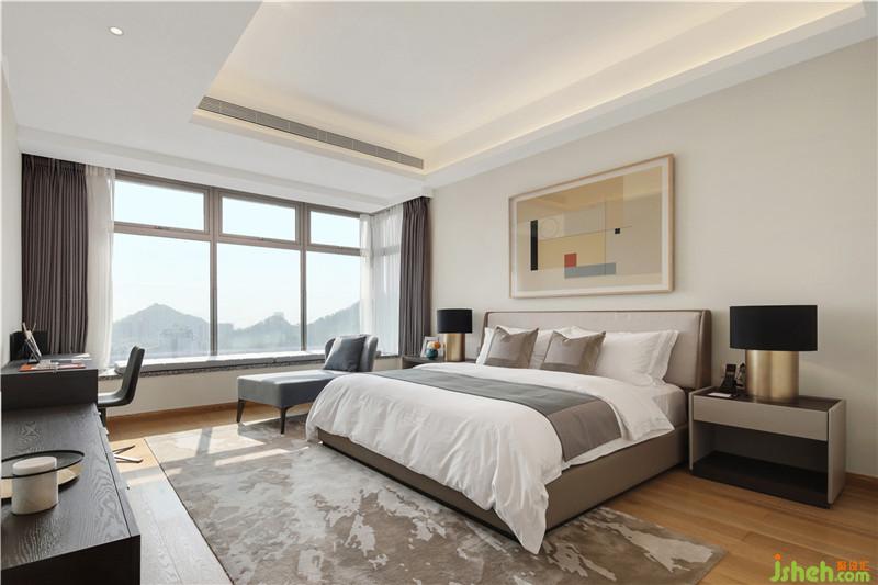 臥室更多是為了表達居住者的情調(diào)與心境。這里的安排更像是一種溫暖的、治愈的生活儀式。沿用了客廳一樣巨大玻璃窗,搭配高雅清幽的高級灰調(diào)背景,簡約、明凈,無需過多色彩點綴,“生活”的氛圍便有了。深圳裝修公司