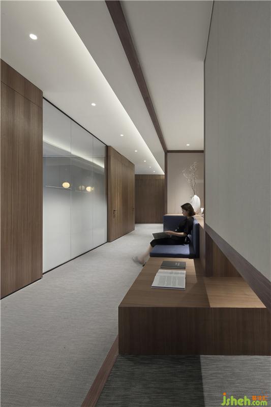 木飾面墻體產(chǎn)生的隔斷感溫和有力、收放自如,自然方正的形態(tài)遵循理性有序的設(shè)計法則,從而讓整個大堂有了延長性、藝術(shù)性,工整有序,流暢而舒適。裝修設(shè)計