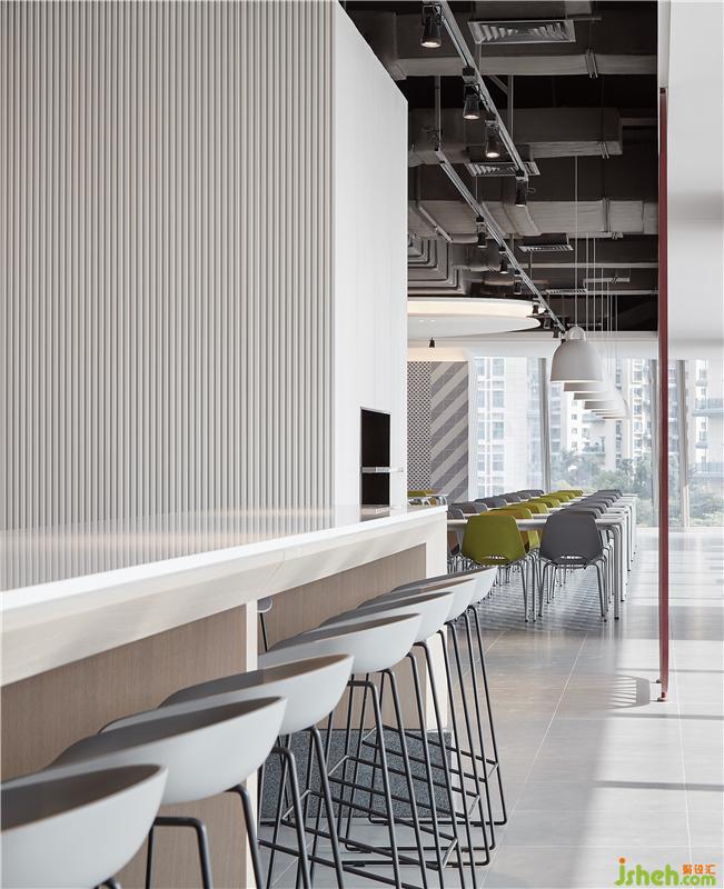 為了能夠顛覆大眾對(duì)潮濕悶熱食堂環(huán)境的刻板印象,YuQiang&Partners將時(shí)尚現(xiàn)代、摩登與節(jié)奏感融入簡(jiǎn)單開放的空間,把深圳灣一號(hào)標(biāo)志性的絕美的都市無遮攔海景與陽光風(fēng)情最大化,對(duì)“員工食堂”的概念進(jìn)行一次全新演繹。餐廳設(shè)計(jì)