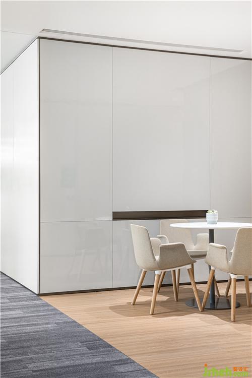 區(qū)別于繭型工作站,主辦公空間之外劃分出的各類談話區(qū)則不拘泥于完整空間框架約束,更具有“群組性”及“非正式”感。