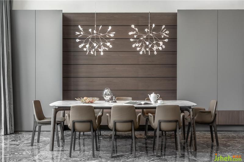 與此同時(shí),設(shè)計(jì)師又有意將空間區(qū)分,以天花、燈飾與材質(zhì)分別獨(dú)立,香港別墅裝飾分離不同功能的空間格調(diào)。