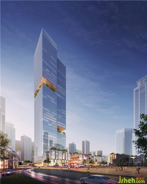 由橫向的商業(yè)裙樓和垂直的辦公塔樓組成,面向港灣,太子廣場背靠小南山,擁有得天獨(dú)厚的山海景觀,其建筑外觀由OMA大都會建筑事務(wù)所操刀設(shè)計(jì)。