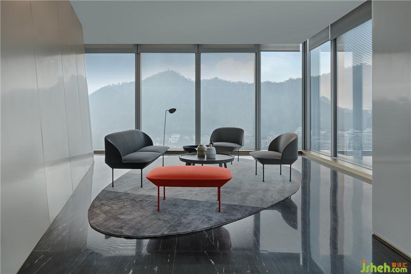 辦公室設(shè)計(jì)與光影相互作用,讓空間本身更顯輕盈。在以高級灰為基調(diào)的觀景平臺中,Mutto的oslo系列沙發(fā)塑造了一處安靜、自在的角落。