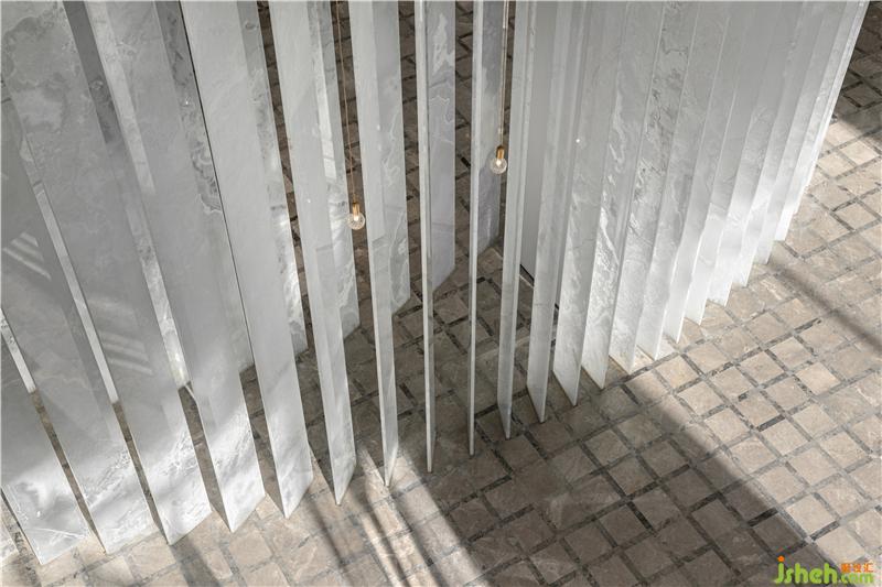 天津銷售中心設(shè)計(jì)師通過精確計(jì)算空間比例,將每一片玉石以恰到好處的弧度相互間隔,塑造出千回百轉(zhuǎn)的理性序列之美。片與片之間固定角度的旋轉(zhuǎn)與錯(cuò)開,在空間中形成了極具秩序感的藝術(shù)漸變,當(dāng)光線穿透薄片,一束束白色的平行間隙創(chuàng)建出多個(gè)包容性維度,便定格了每一瞬間的流溢美感,純粹而清澈。