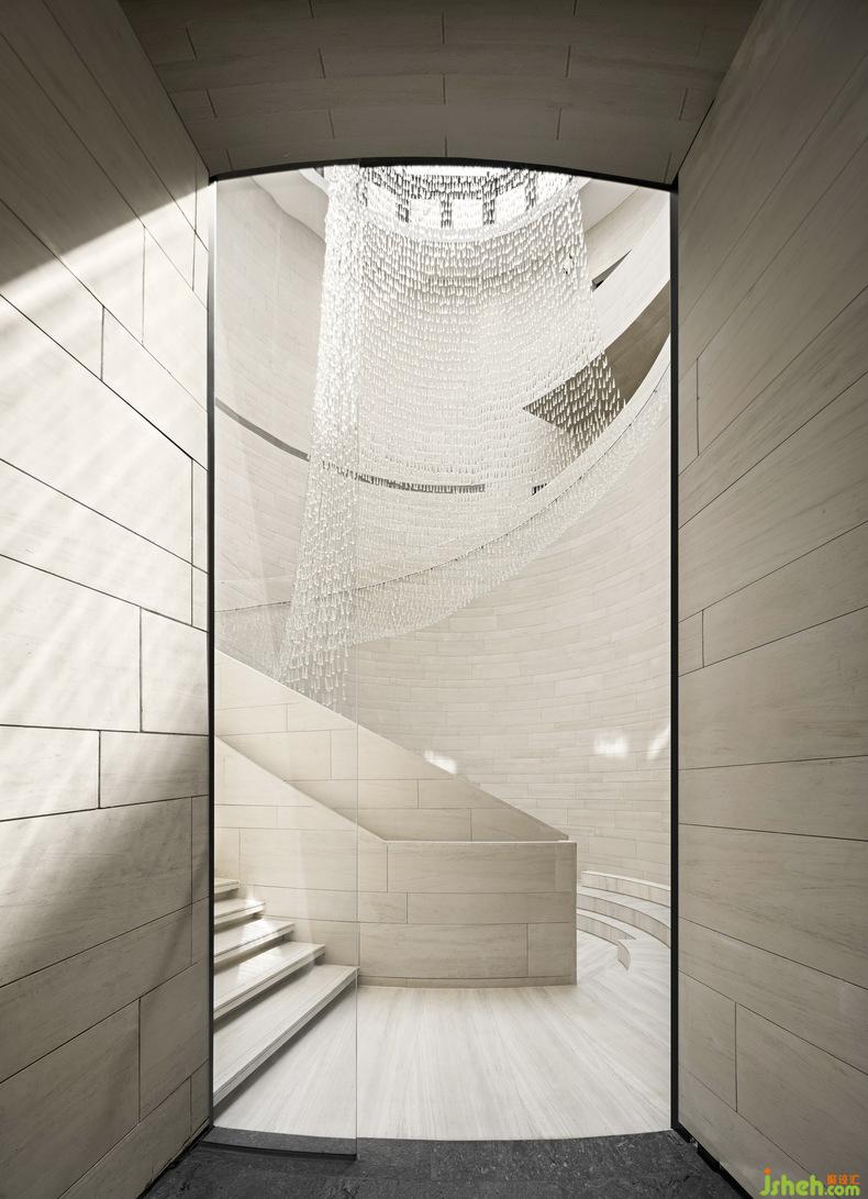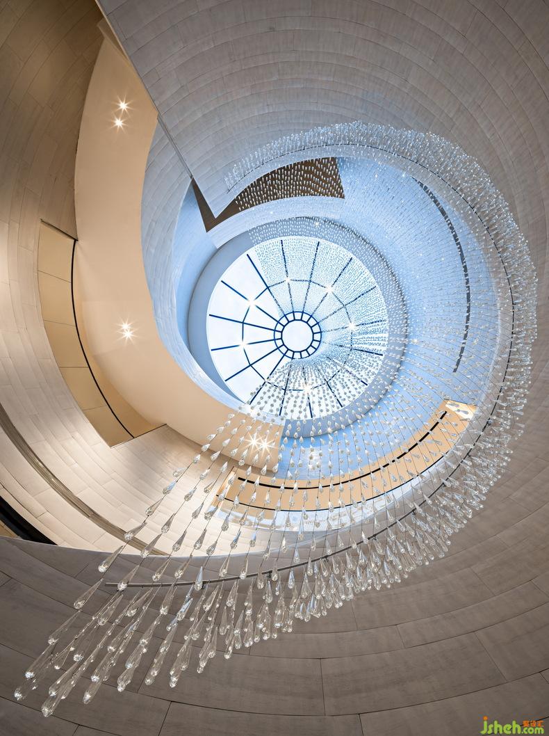 「時(shí)間」和「空間」是互相垂直的兩個(gè)維度。貝殼型的天花造型旋轉(zhuǎn)流動(dòng),售樓處設(shè)計(jì)構(gòu)成前臺(tái)背景,接待區(qū)的平行時(shí)空中「平衡」或「動(dòng)態(tài)」微妙持續(xù)切換。