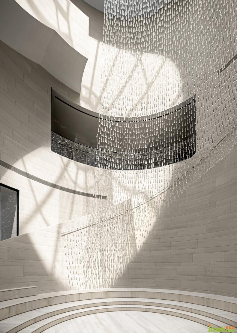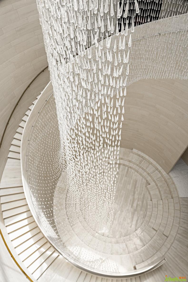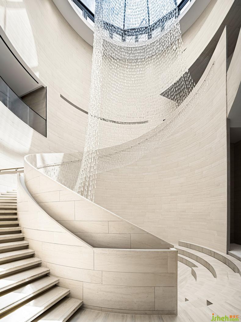 進入這座海上“藝術(shù)方舟”,順著樓梯逆時針到達二層可俯瞰中庭自由的羅馬式廣場,也可仰望四時晨昏的變化。再由二層順時針回到首層原點時,不覺間已縱覽時間和空間兩種維度。