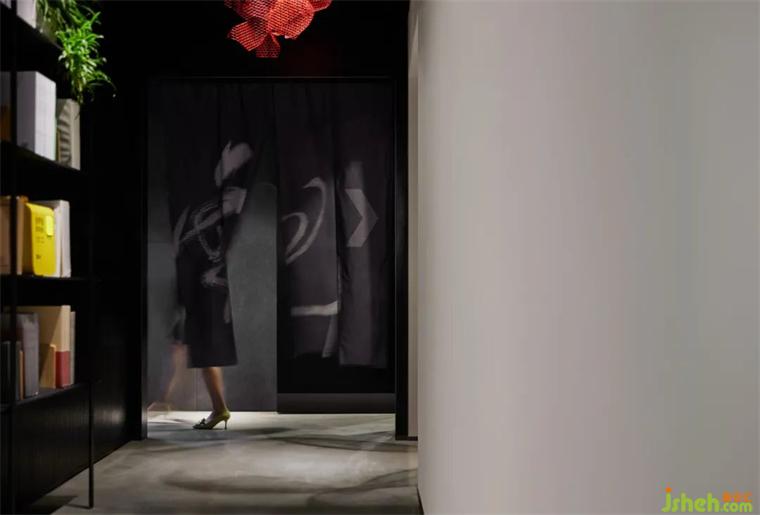 屋內(nèi)及門外,我們創(chuàng)造了一處仿似置身圖書館與畫廊的文化空間,餐廳設(shè)計通過弱化書架和墻體造型凸顯書籍,為客人帶來全新的美食體驗(yàn)。