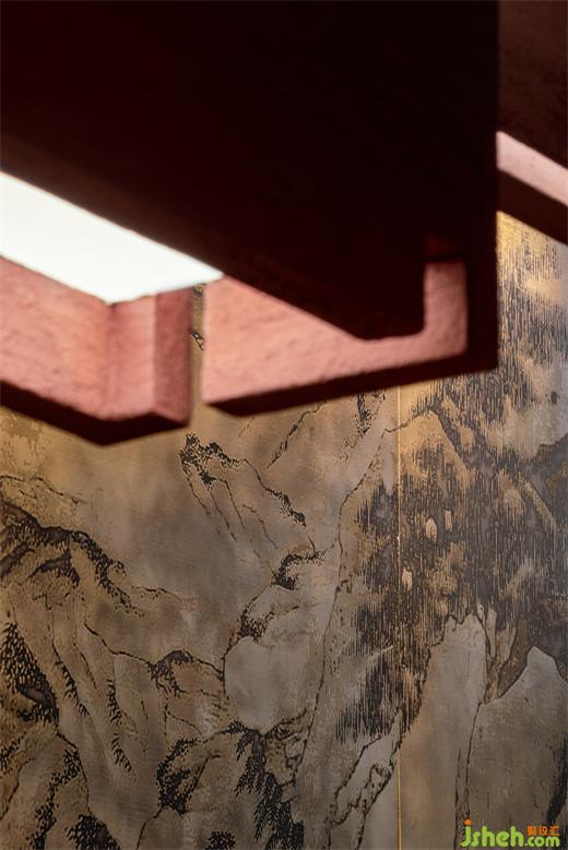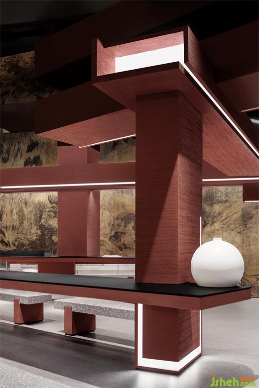 柱體粗糙的風化肌理外表下,包裹著代表未來與科技的光源內(nèi)核,蘊含著古老與未來的巨大反差。
