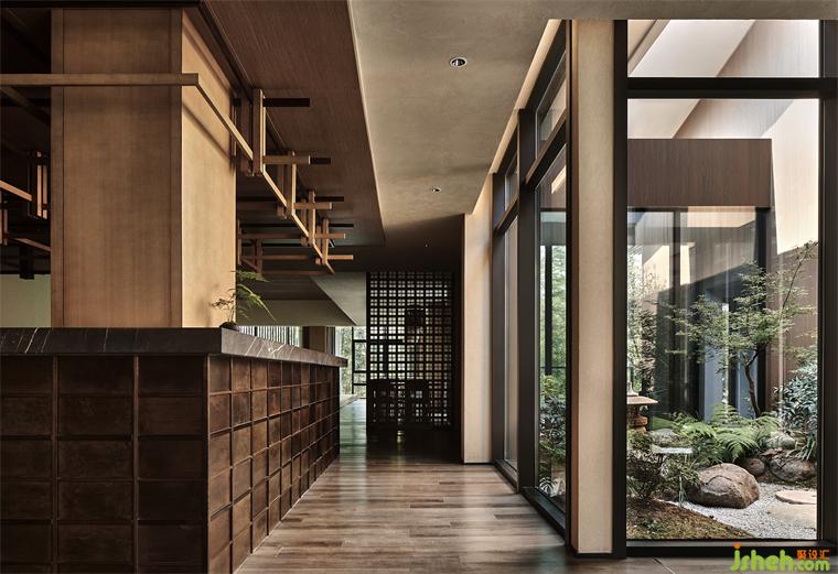 雅澹氛圍自空間的米黃色基底傳遞而來,一種淡淡的東方回響。莊園酒店設(shè)計(jì)隔而不斷的木框結(jié)構(gòu),室內(nèi)外湯泉如同置于同一畫面,原木肌理為水療中心注入別致氣息。