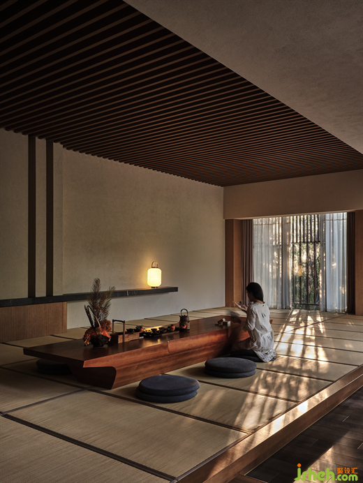 玻璃窗外是竹林,室內(nèi)是原木暖調(diào),自然是一種流動(dòng)的狀態(tài)。焚香、煮茶、泡溫泉、做spa,享受下午茶歇、日式輕食......水療中心的多功能體驗(yàn),由人的放松需求主導(dǎo)。