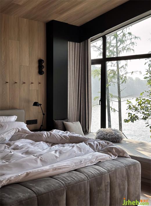 一扇窗臺即一幅景框,與湖面遠(yuǎn)遠(yuǎn)疊為一個詩意畫面,戶外自然之美,頗有詩句里“堂開團(tuán)竹色,窗靜引送風(fēng)”的意境。