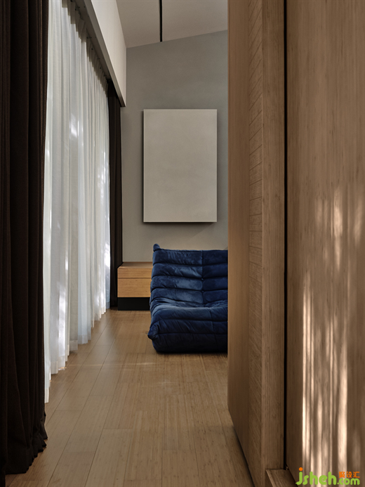 透過竹編織飾面與天花草席,設(shè)計師將自然的構(gòu)造物融入旅度生活方式之中,手觸摸到的脈絡(luò)獨具匠心,藏有隱逸生活的小細(xì)節(jié)。