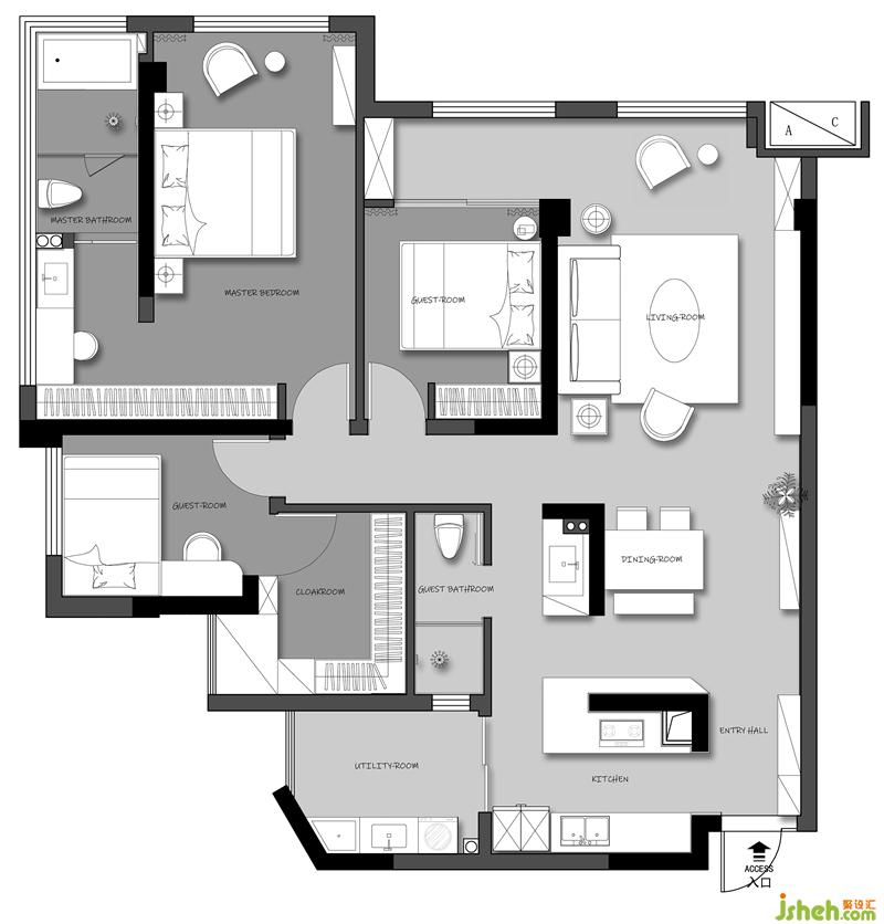 ②公共區(qū)域相對較??;