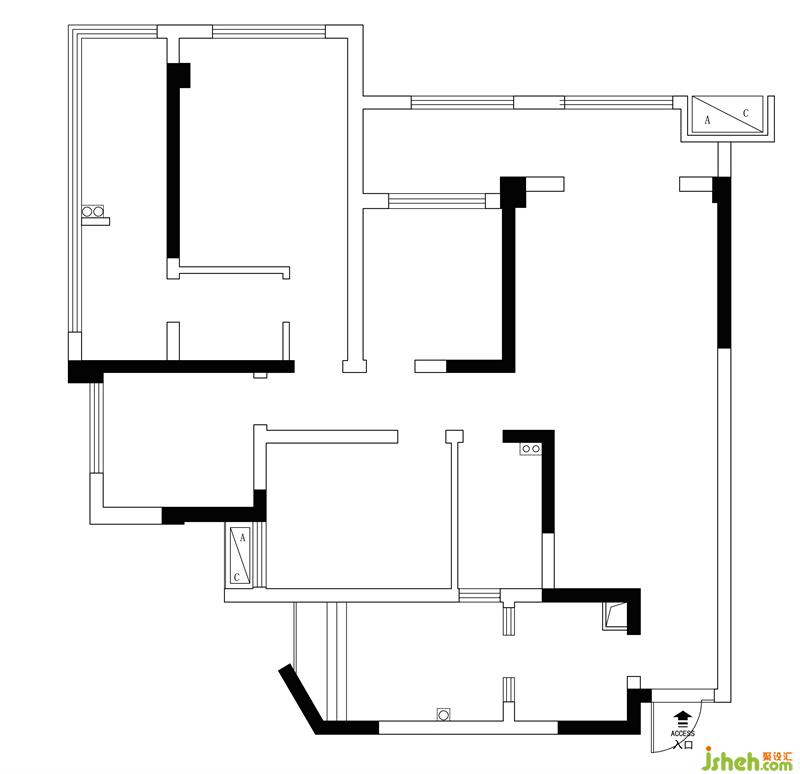③將厚重的墻體打拆并向兩邊擴(kuò)展使臥室空間能夠滿足生活需求;