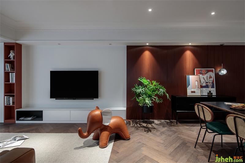 客廳,焦糖色皮沙發(fā)、嫩黃色單人椅、可愛的大象獨(dú)凳、配上有設(shè)計感的電視柜和復(fù)古裝飾畫,整個客廳的休閑氛圍立刻營造了出來。客廳陽臺增加的儲物柜,還特別規(guī)劃了養(yǎng)殖多肉的區(qū)域。