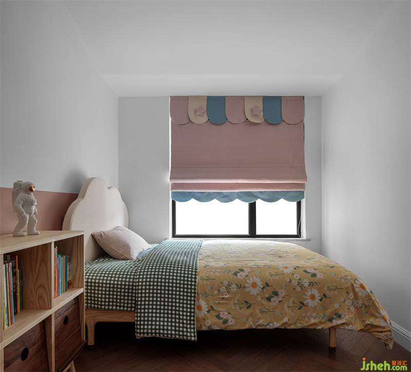 兒童房房間,簡單,素雅,在滿足使用功能的同時規(guī)劃了衣帽間,為小朋友“美”“好”的生活奠定了基礎(chǔ)。