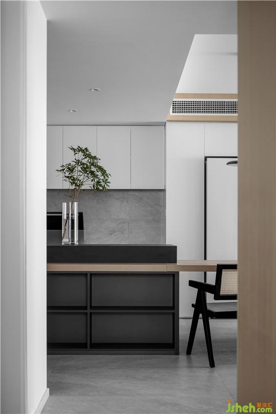 開放式的廚房空間,擺脫傳統(tǒng)廚房的中規(guī)中矩,西廚島臺式餐廳不僅增加了家庭生活的互動性,還可以讓孩子體驗(yàn)和大人一起做飯的樂趣。島臺下面的裝飾隔用于擺放日用食品和用具,提升生活便利性。