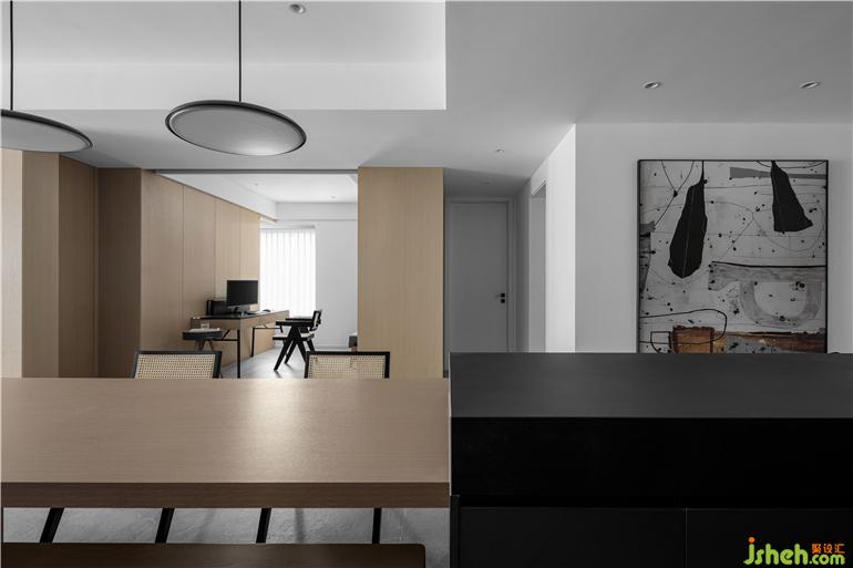對于簡約,我們理解為選材上的克制,用色的純粹,不同的功能細(xì)節(jié)來支撐空間的平衡。石材與木質(zhì)的搭配在冷暖調(diào)中也顯得剛?cè)嵯酀?jì)。一個大的廚房空間,加一個大的餐廳,三五好友或親人可以經(jīng)常相約而憩,聊天、聚會、看電影等,一起享受愜意時光。