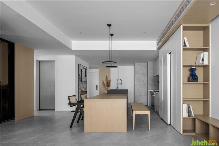 予上空間設(shè)計打掉原本狹窄的過道和廚房空間的墻體,以“空間之形,構(gòu)筑一方靜土”讓空間成為人們尋求內(nèi)心自在的載體。希望回家的人都能感受到舒適與放松,享受簡單幸福的生活,輕松愉悅家庭氛圍。