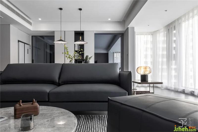 客廳打破了傳統(tǒng)格局,打通陽(yáng)臺(tái),在靠電視墻一處設(shè)計(jì)了小吧臺(tái),讓屋主在這里簡(jiǎn)單的辦公、喝茶、聊天等。陽(yáng)臺(tái)放置一個(gè)慵懶的沙發(fā),在周末陽(yáng)光灑進(jìn)來(lái)時(shí)可以看看書(shū),或練練瑜伽。