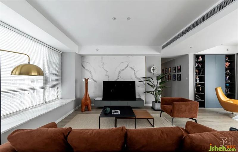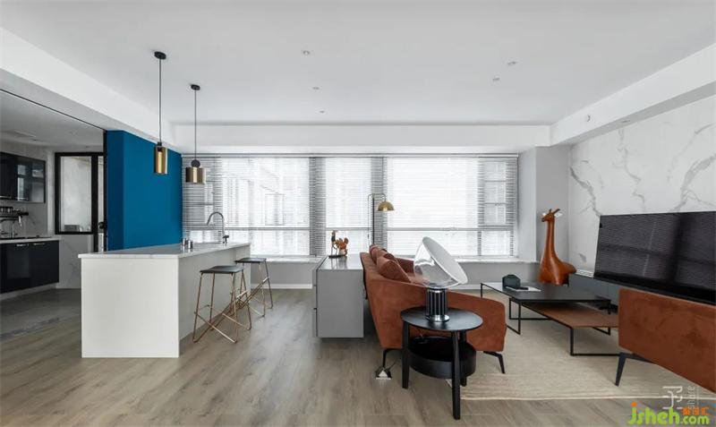軟萌的橙色小鹿搭配深邃的歐式建筑過(guò)道,深藍(lán)的乳膠漆墻面銜接深灰色的木質(zhì)面板,無(wú)形中加深了空間的縱深感,帶給空間無(wú)限的可能。生命中許多吉光片羽,我只愿蓬勃生活在此時(shí)此刻,去決定怎么愛,怎么活。