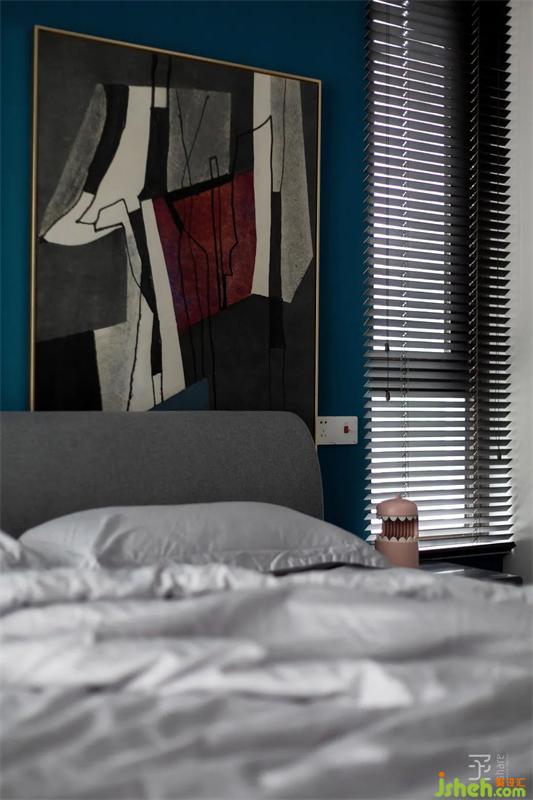臥室背景墻上半露的抽象涂鴉裝飾畫,與整個(gè)空間既融合又碰撞。不僅與整體色系相協(xié)調(diào),更增加了臥室的精致感。成都家居設(shè)計(jì)灰色棉麻床品讓需要真正休息放松的人們達(dá)到它最大的目的,拉上藍(lán)色遮光窗簾,即使在耀眼午后也能沉沉的睡一覺(jué)。