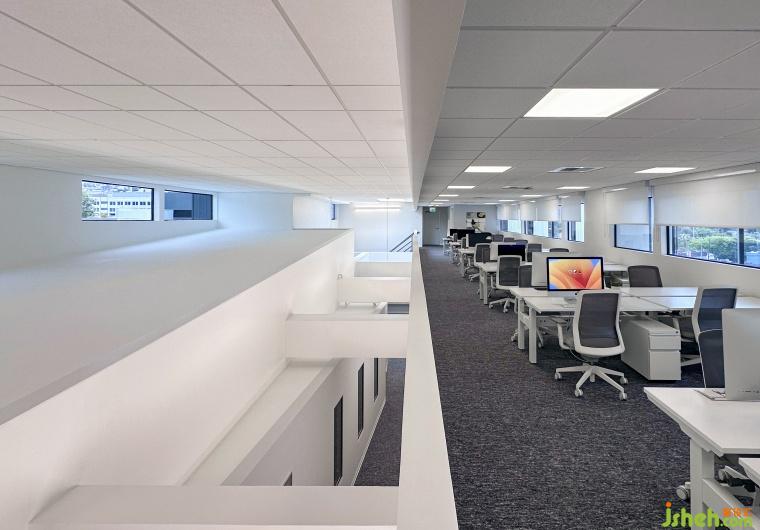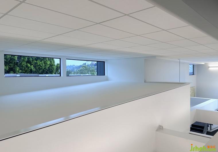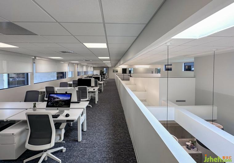二樓的開(kāi)放式辦公區(qū)與高挑空區(qū)域緊密相連,為員工提供了開(kāi)闊的視野和流暢的空間感受。一側(cè)的高窗與整體空間和諧融合,使得整個(gè)區(qū)域明亮通透,營(yíng)造出一種極為宜人的辦公環(huán)境。
